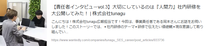 人と人の繋がりを大切にする、この想いは社名の“tunagu(ツナグ)”にも込められています!